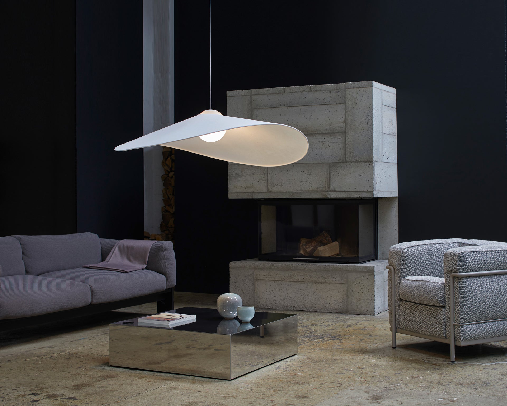Die LOJA Leuchtenserie besteht aus der LOJA Tischleuchte, einer Stehleuchte und einer Pendelleuchte in zwei Größen – ⌀ 90 cm (35,5 Zoll) und 120 cm (47,2 Zoll)