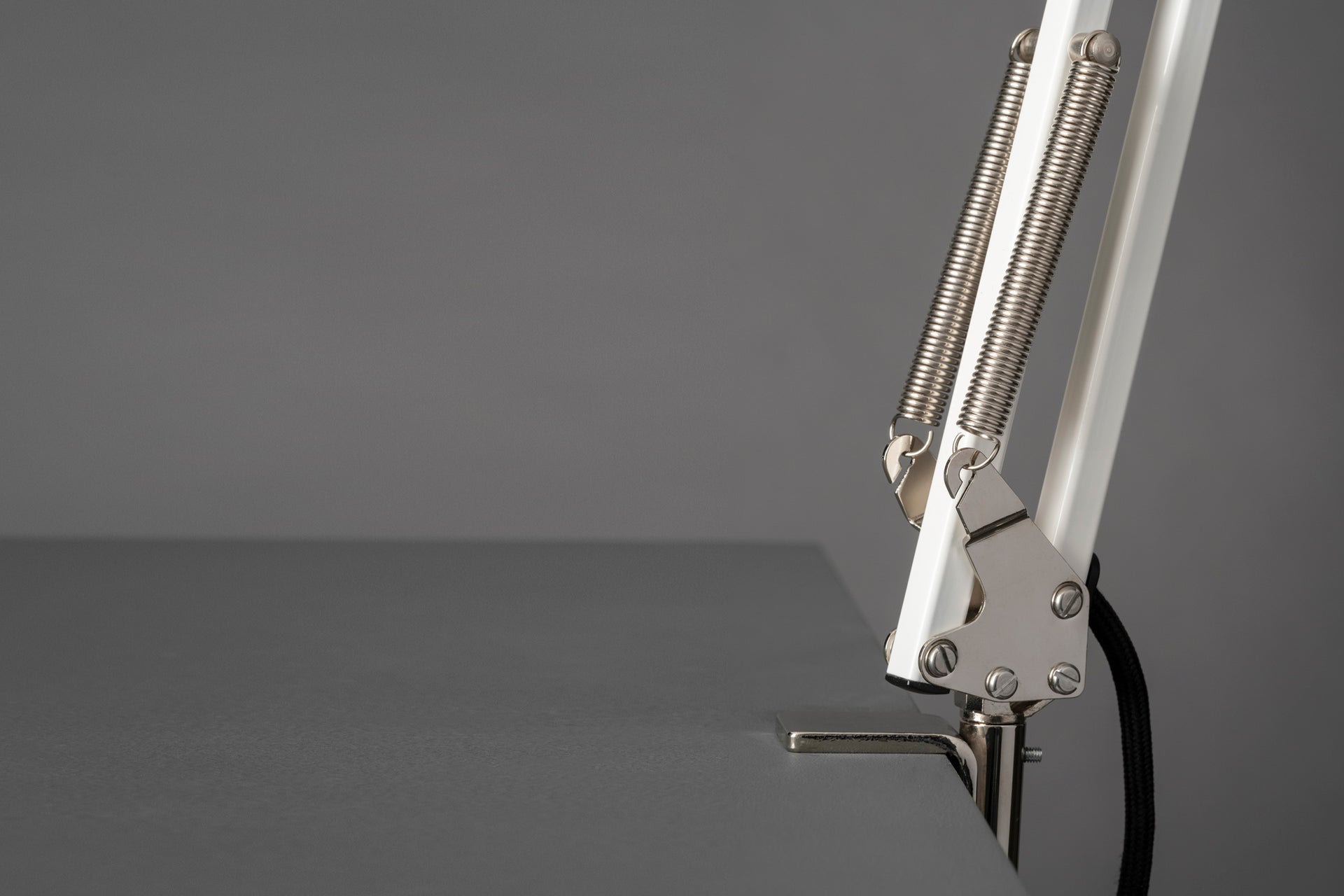 Hohe Anpassungsfähigkeit dank ikonischem Federmechanismus mit in alle Richtungen verstellbarem Leuchtenkopf. Die Spannfedern und Platten sind aus Stahl gefertigt und garantieren somit eine lange Lebensdauer.