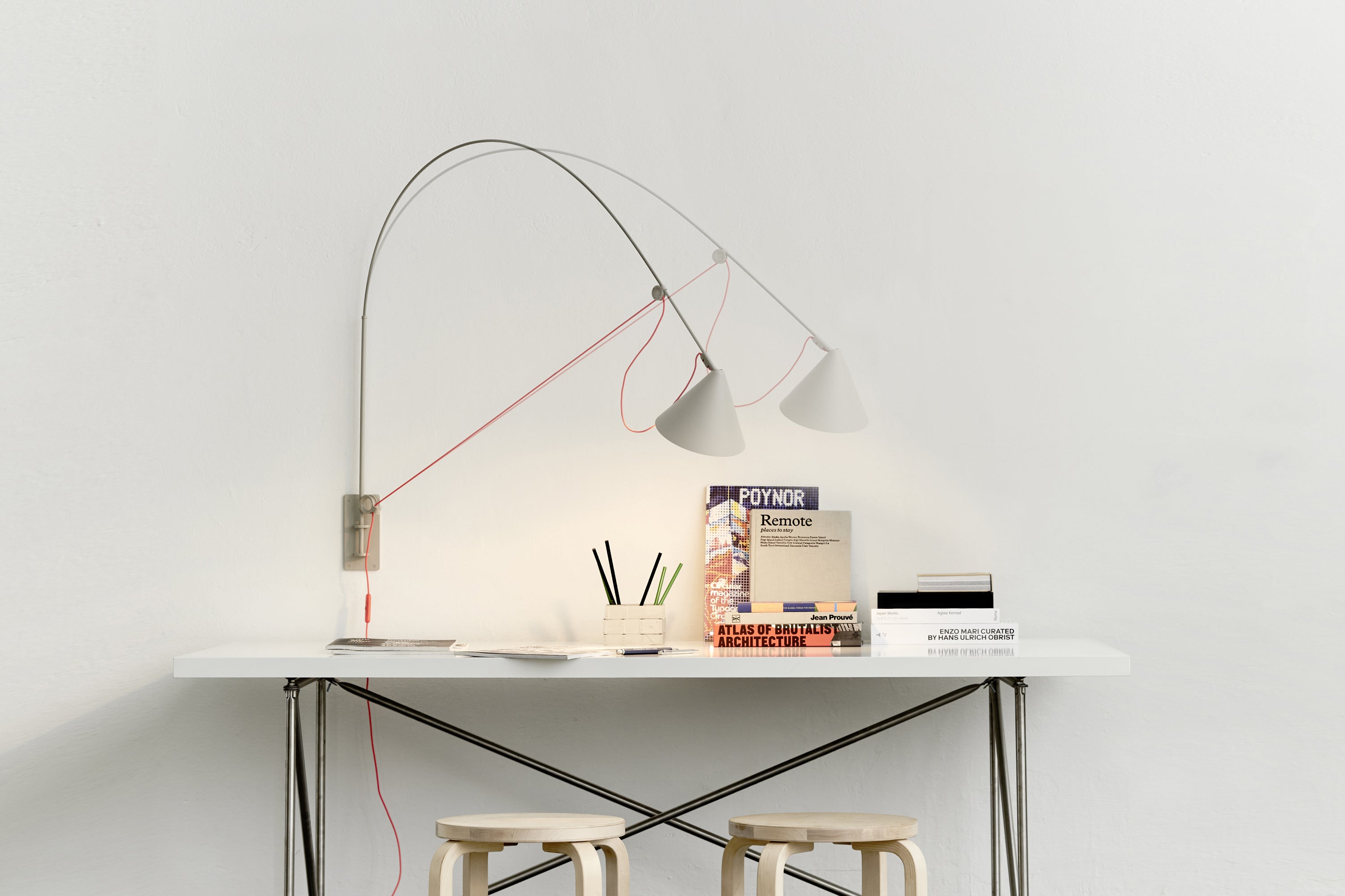 The AYNO L wall lamp has the perfect adjustable dimensions to illuminate work desks, small dining tables or highlighting favorite interior statements. The minimalist design and leight weight construction allow flexible usage of this wall lamp.