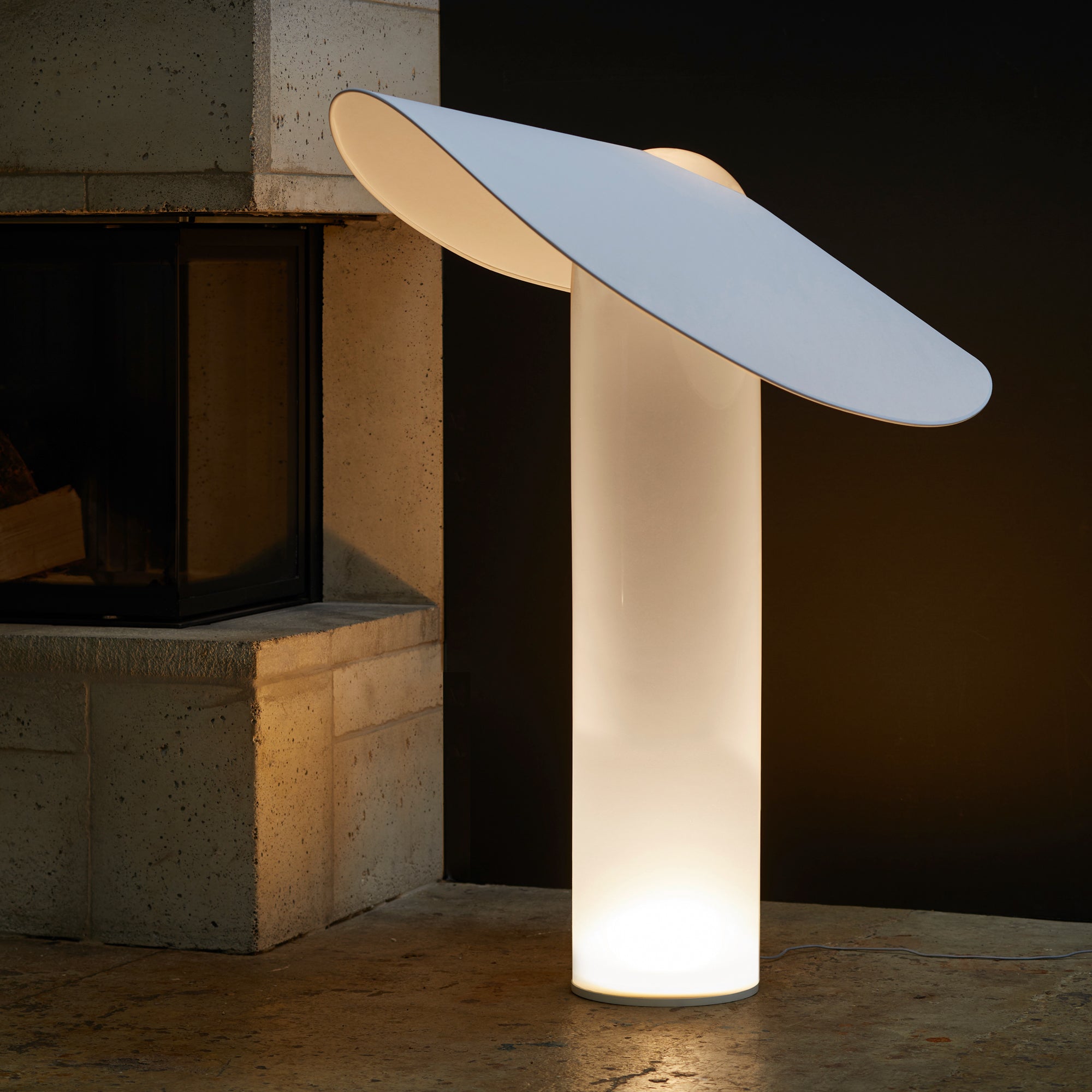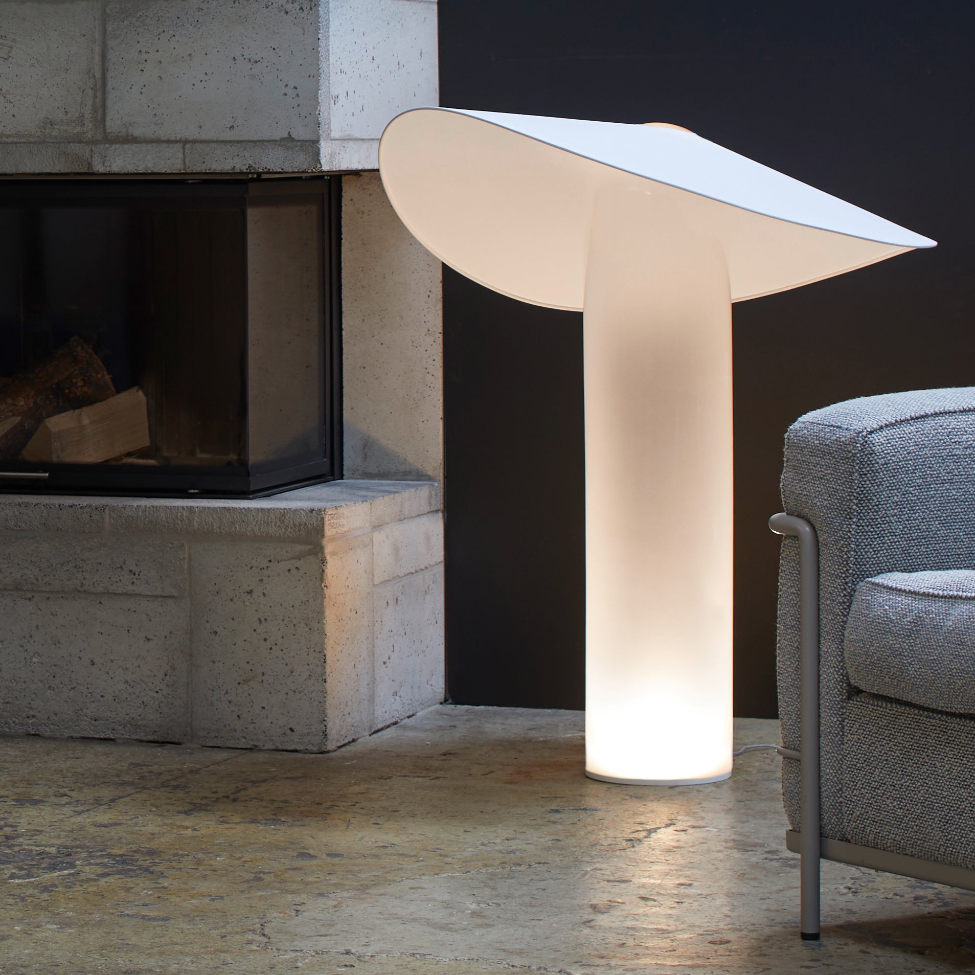 Sculpturale dans sa présence et belle en tant qu'objet. L'abat-jour librement ajustable, avec son geste caractéristique, permet un jeu atmosphérique d'éclairage direct et indirect.