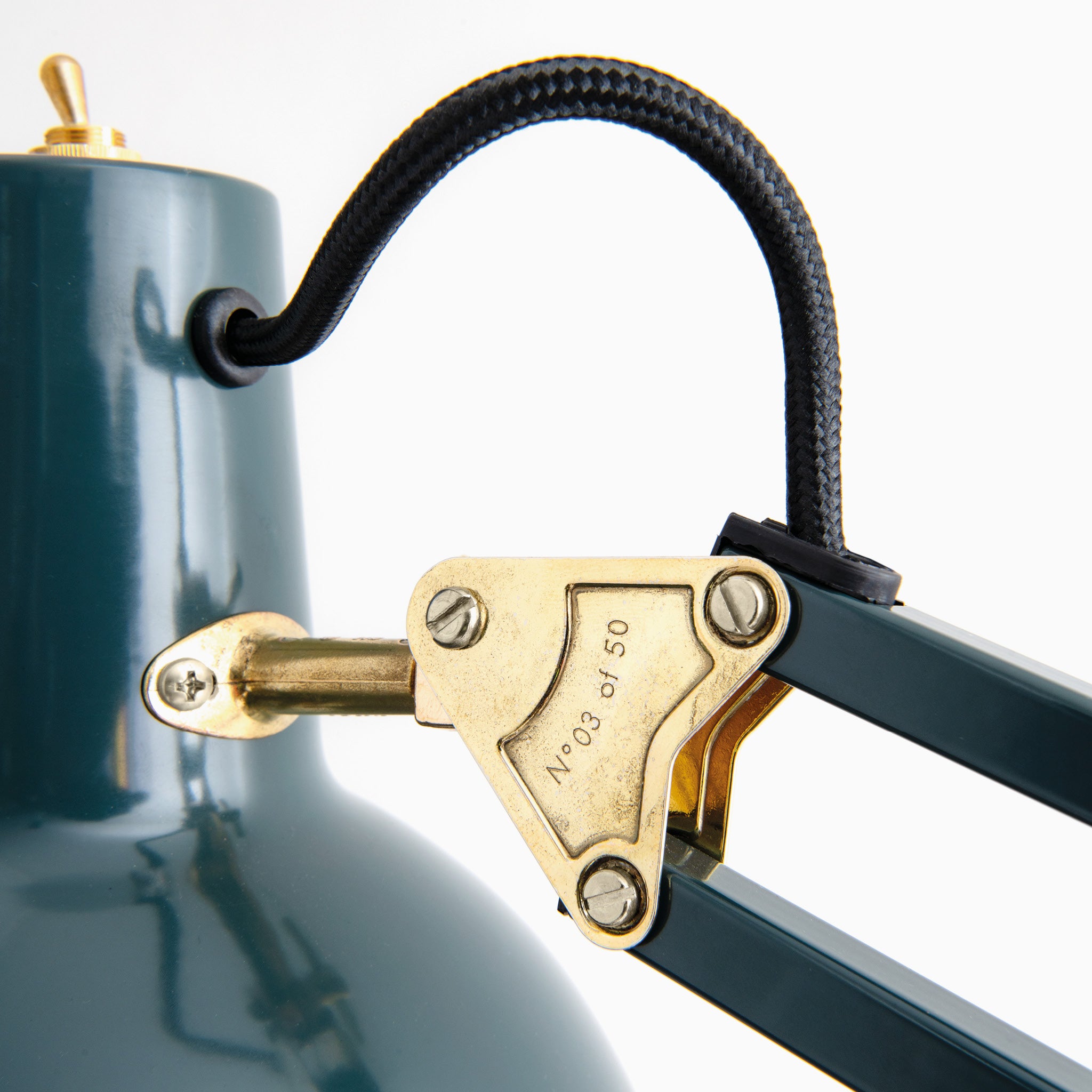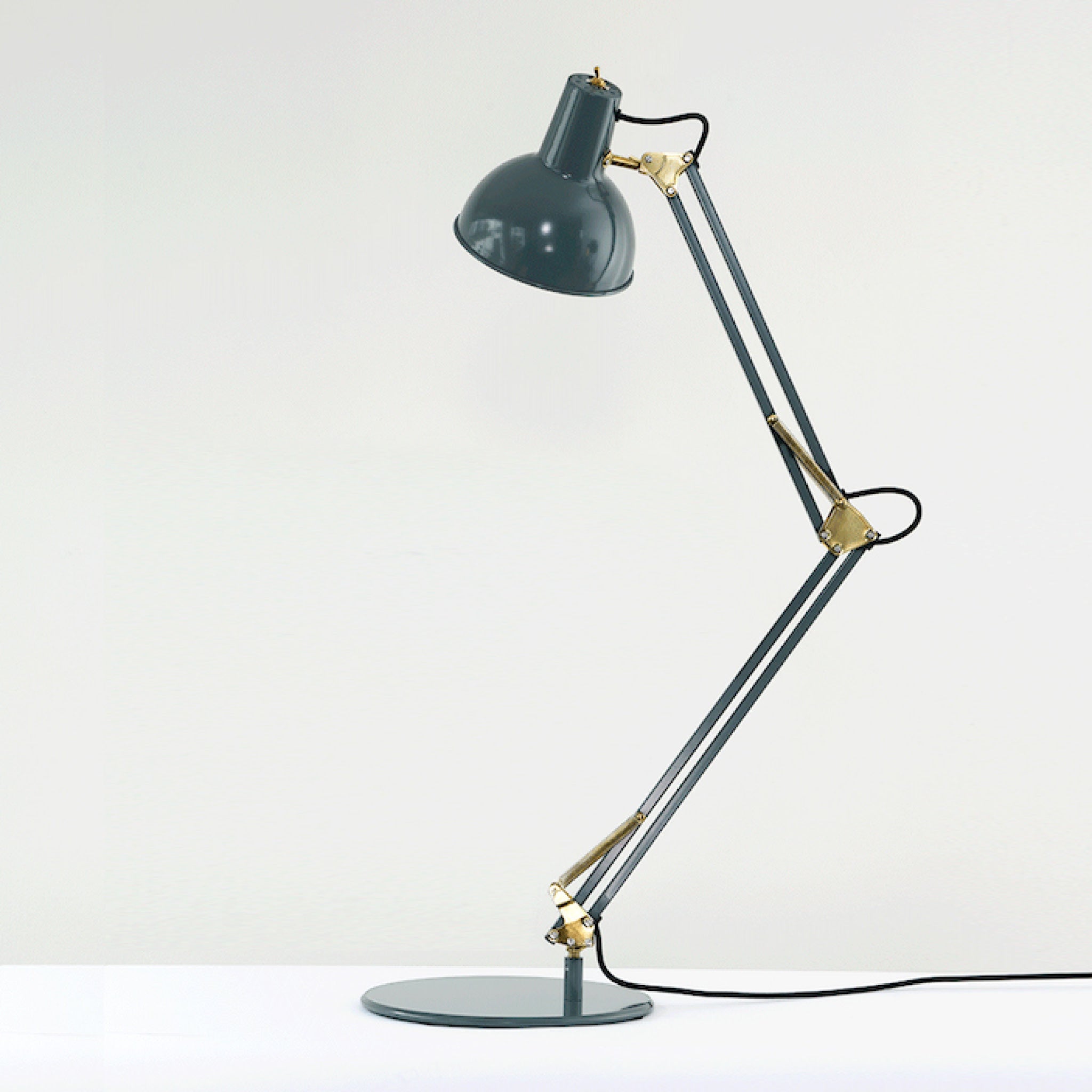 A design classic reinterpreted in petrol grey with brass-plated metal parts.