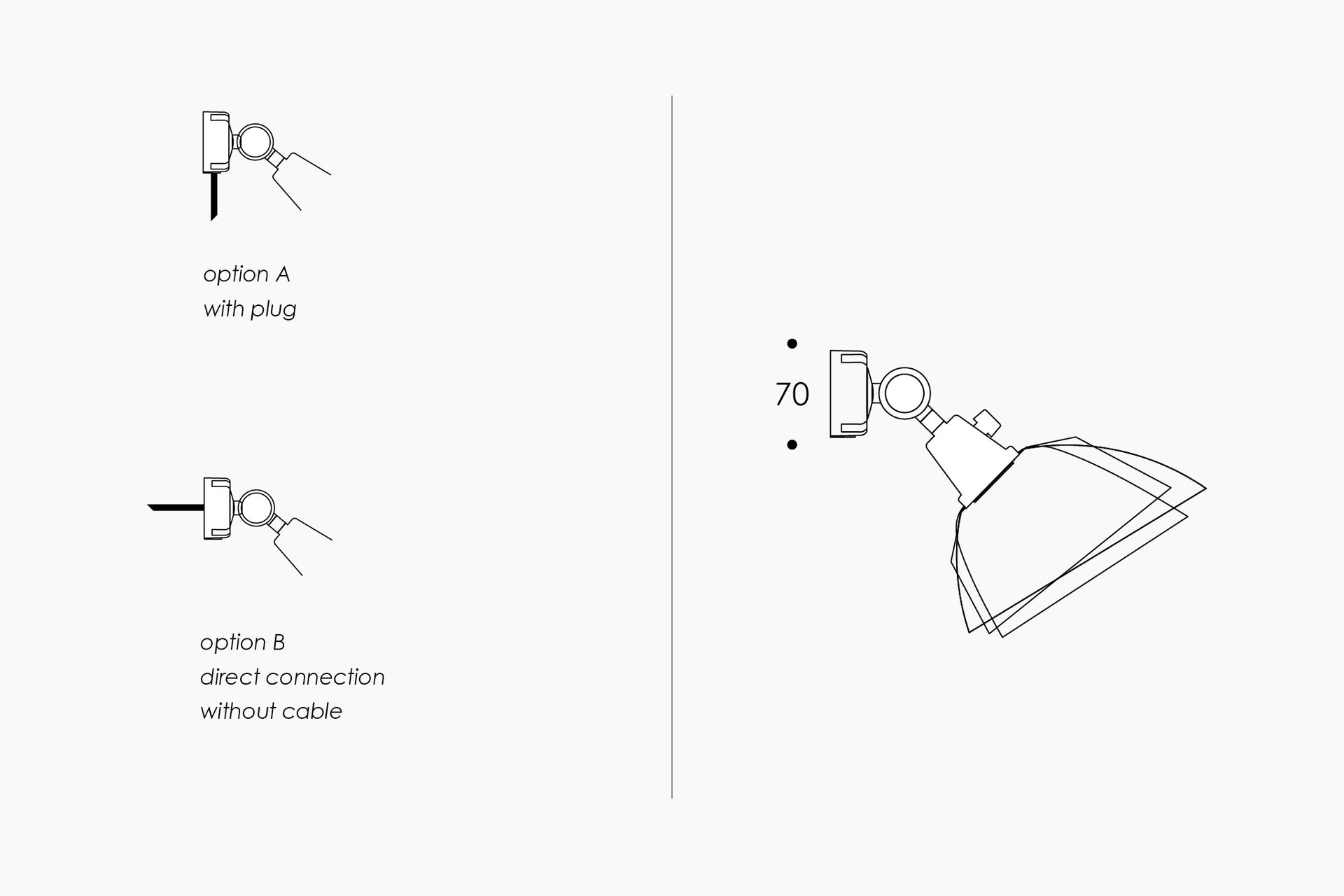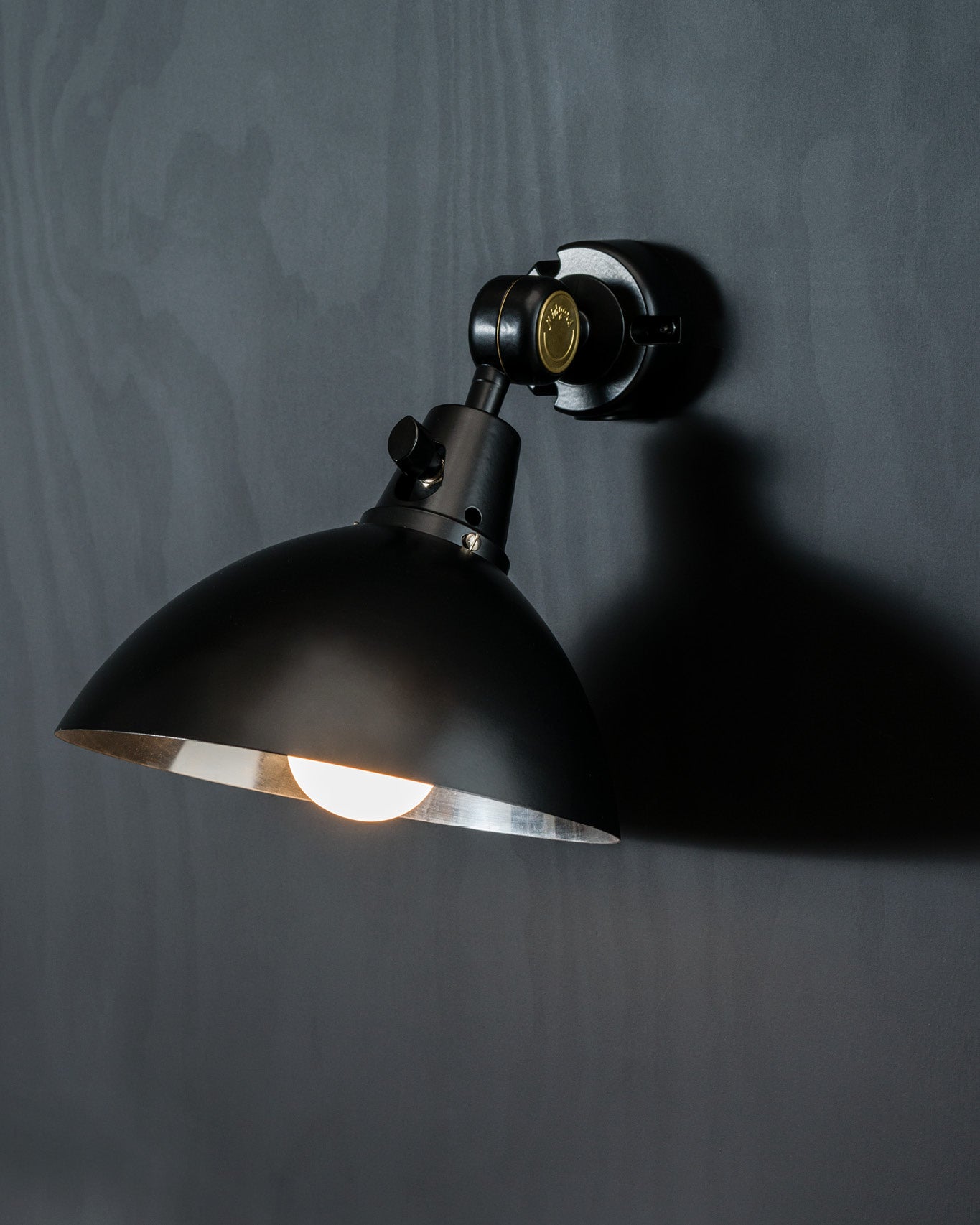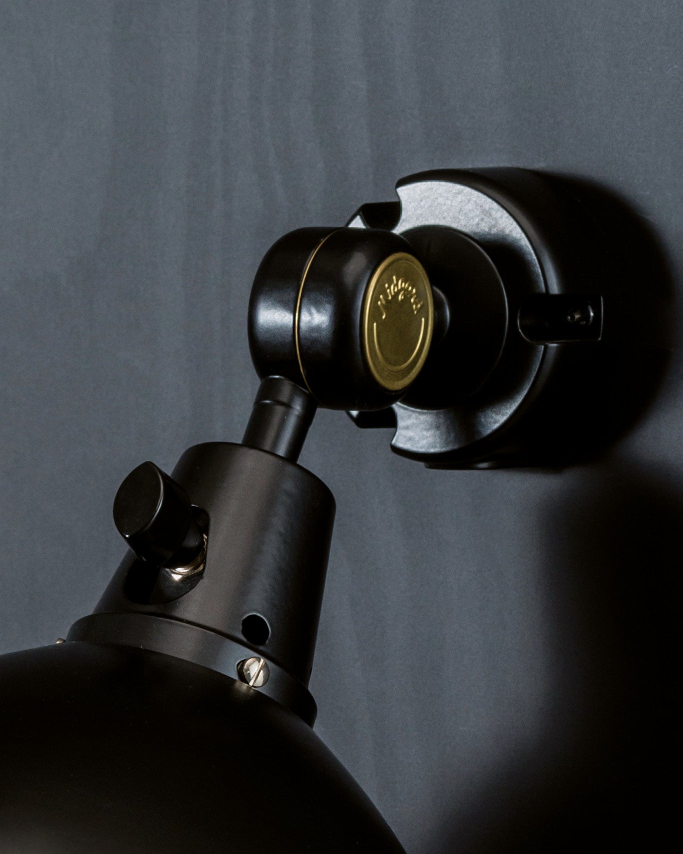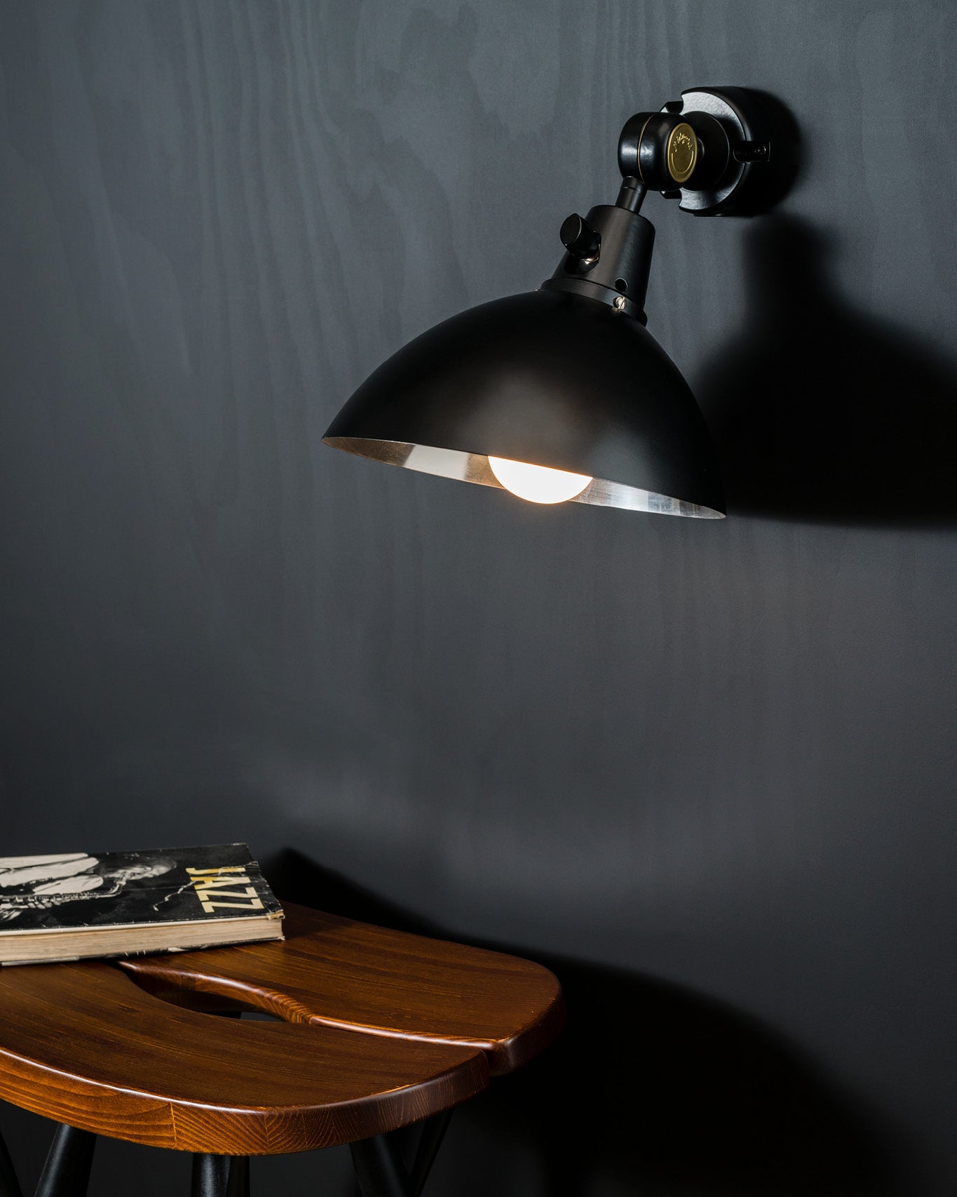 The modular wall spot is an iconic classic with its almost sculptural presence. The spot can be adjusted at its fixture. A classic rotary switch located at the lamp dome allows you to turn on the lamp. The 360° rotatable lampshade ensures glare-free lighting.