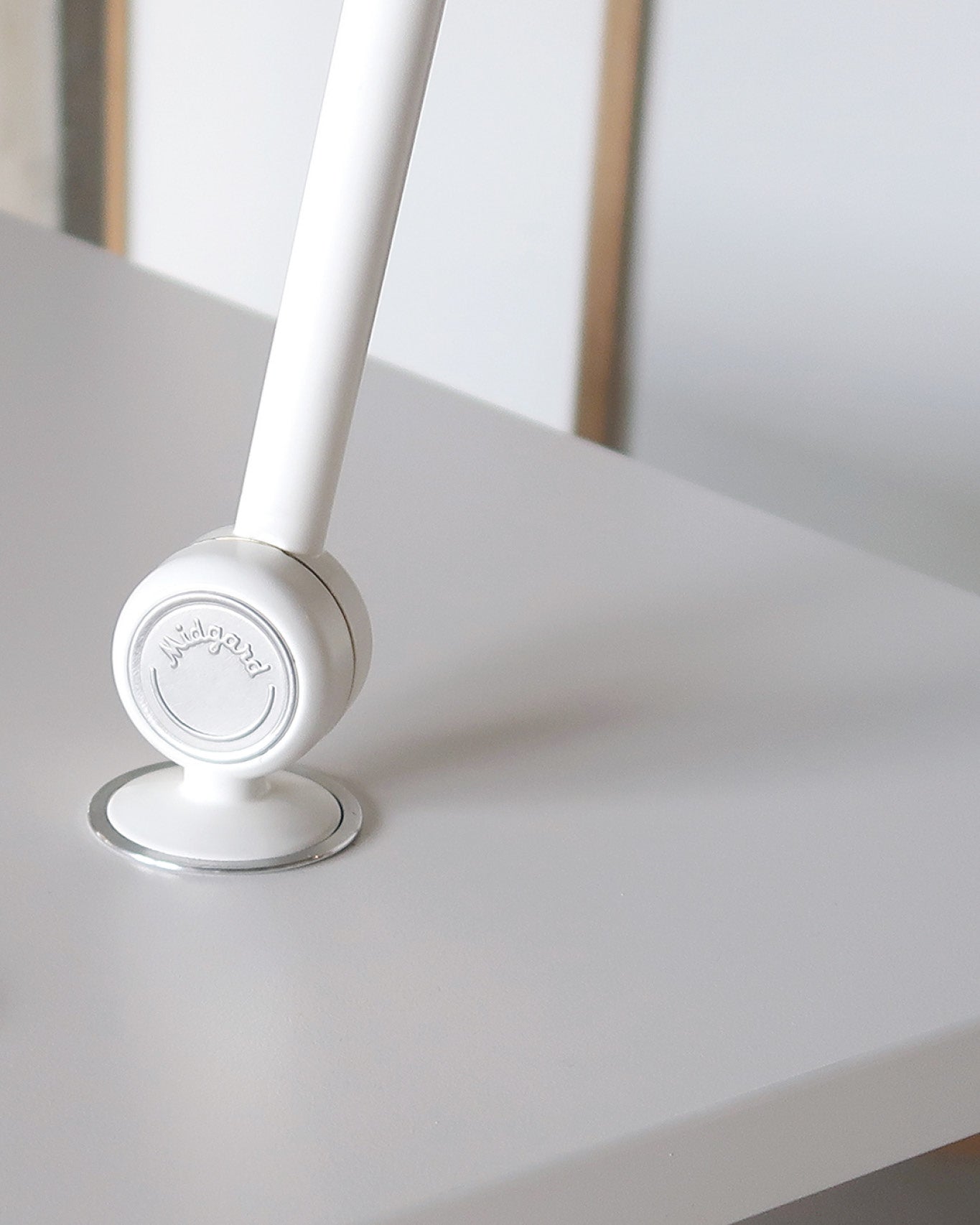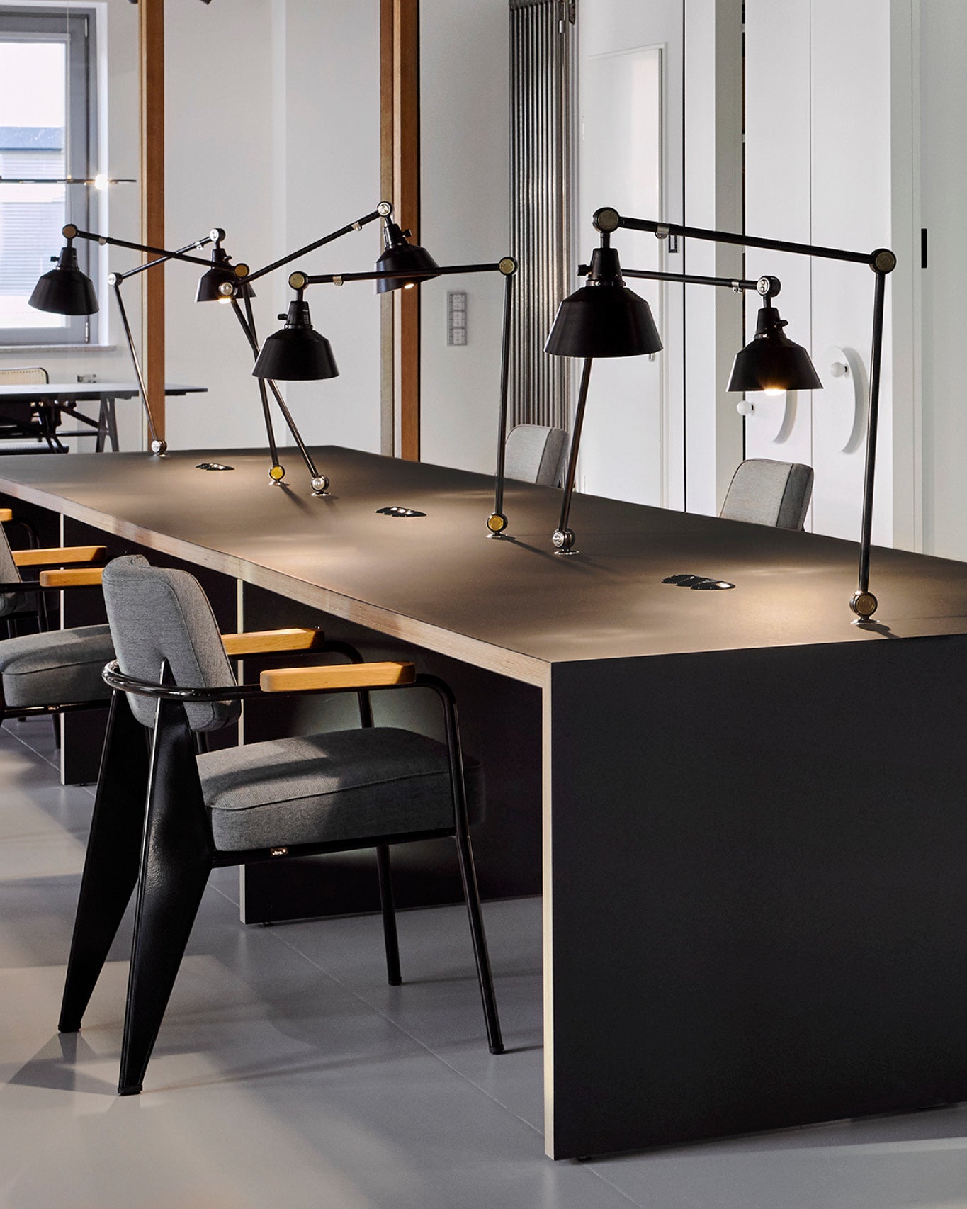 Based on the iconic TYP 113 Bauhaus lamp the MODULAR office adapter lamp is a highly versatile and six-point adjustable desk lamp, bringing light exactly where needed. The adapter allows wireless connection to all standard office desk systems from various manufacturers.
